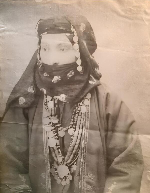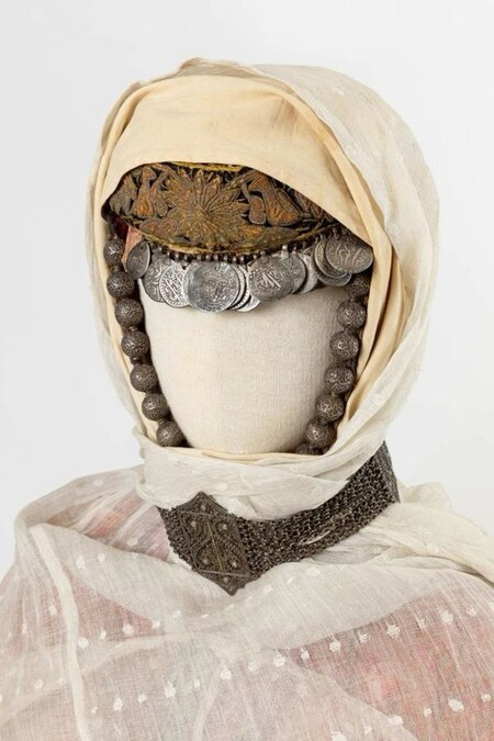 На данных фотографиях представлен западный вариант костюма, так как нос и подбородок не закрыты и единственный платок свободно свисает позади.
