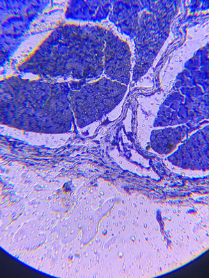 Lamina fiinita nervi motorii (End of motor nerve plate). Micropreparatom on the optical glass. ♪ Cherokee, stem ♪ Moscow region, zoom lens, compact chamber