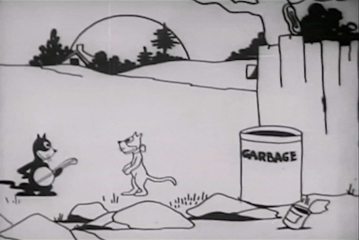 В эпизоде про кота Феликса баблы используются для передачи реплик персонажей, а восклицательные и вопросительные знаки для отражения их эмоций. Так, вопросительный знак выступает в роли подготовительной фазы перед тем как Феликс решается бежать к дому, ноты, вылетающие из гитары кота являются прямым отражением мелодии, храп показан характерным для комикса «zzz», а удар хозяйки по голове разлетевшимися в разные стороны линиями.