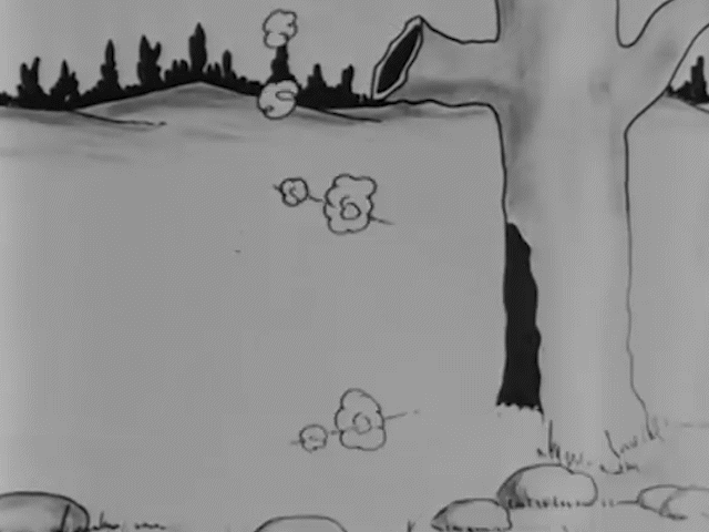 Ранняя анимация почти всегда сопровождалась в кинотеатрах живой музыкой. В условиях технологических ограничений звук существовал как элемент, требующий перевода на язык изобразительных метафор. Он материализовался в кадре через систему условных знаков, начиная от статичных звукоподражаний, которые были унаследованы от комиксов, до динамичных визуальных образов, где звук и ритм обретали физическую форму и характер, становясь активными участниками действия.