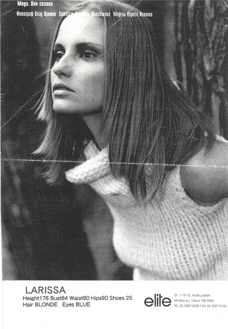 Лариса: Уже нет: я приехала работать по следам других [Прим. АРМ: в 1990-х годах Европу покорили несколько русских моделей, среди которых первыми были Татьяна Сорокко, Ирина Пантаева и Людмила Исаева].
