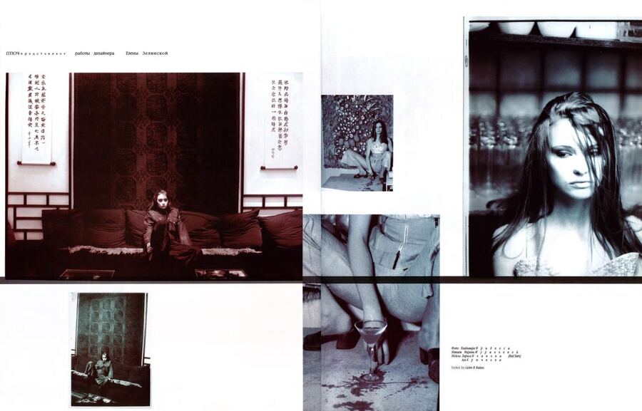 съемка одежды дизайнера Елены Зелинской журнал «Птюч», март 1995 фото: Владимир Фридкес макияж: Мария Муравлева модели: Лариса Иванова, Ася Крючкова