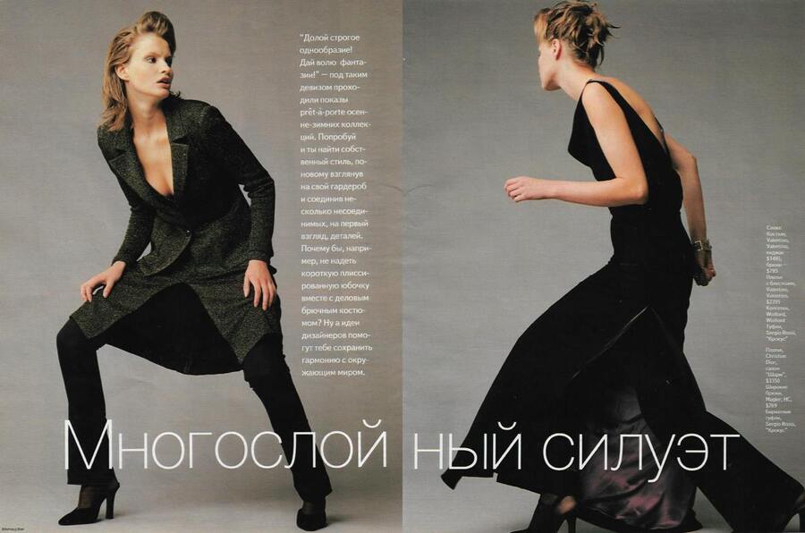 съемка «Многослойный силуэт» Cosmopolitan, ноябрь 1997 фото: Владимир Фридкес визажист: Татьяна Волкова стилист: Шакри Амихранова модель: Лариса Иванова