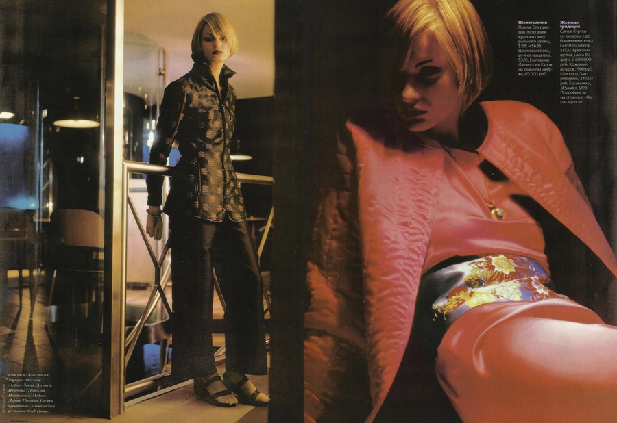 съемка «Осень в городе» Cosmopolitan Russia, октябрь 1997 фото: Andy Tan модель: Лариса Иванова стилист: Bastiaan Van Schaik визажист и мастер по волосам: Allard Honigh