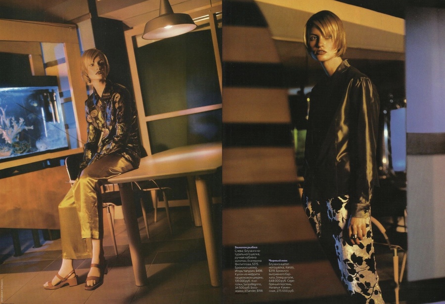 Лариса: Из журналов у нас широко доступны были в основном Burda Moden — это не совсем то, но и их я смотрела. А фотографы, как Фридкес, Королёв, Локтев — все уже с опытом и часто показывали что-то. Первые съемки были счастьем, все тестовые были у Локтева. Он хорошо объяснял, что требуется; Вероника Шеповалова, его жена, делала всем макияж. Работать с ними было прекрасно — профессионалы с добрым сердцем.