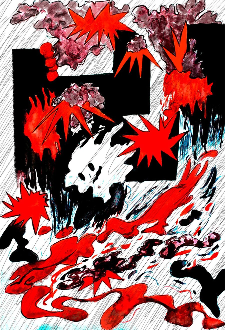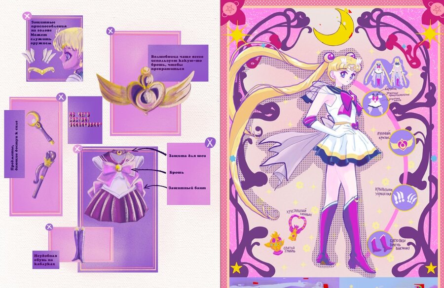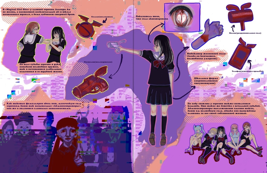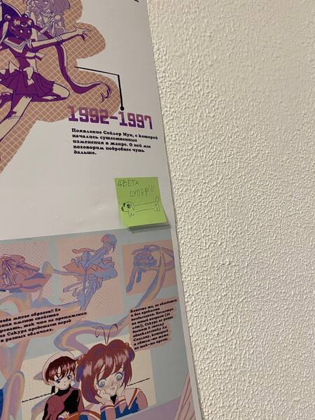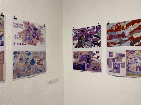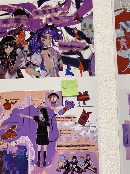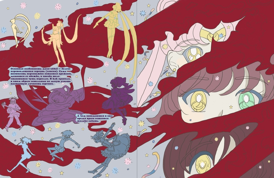 Второй работой были развороты моего нонфикшн-комикса «Махо-сёдзё». Они были представлены в виде слайд-шоу и также вывешены на стену.