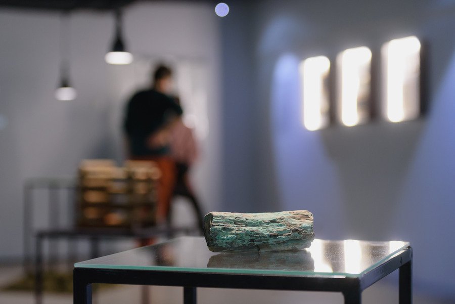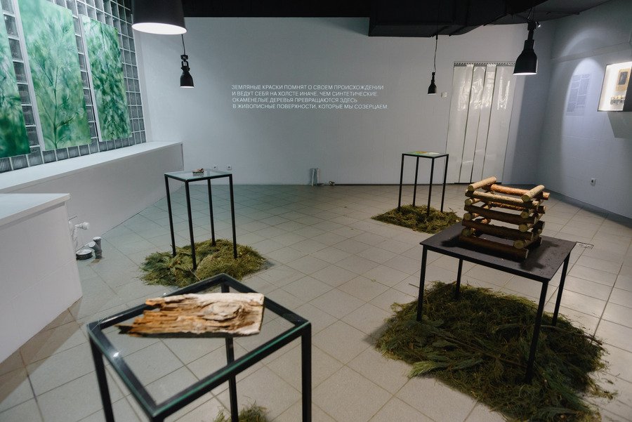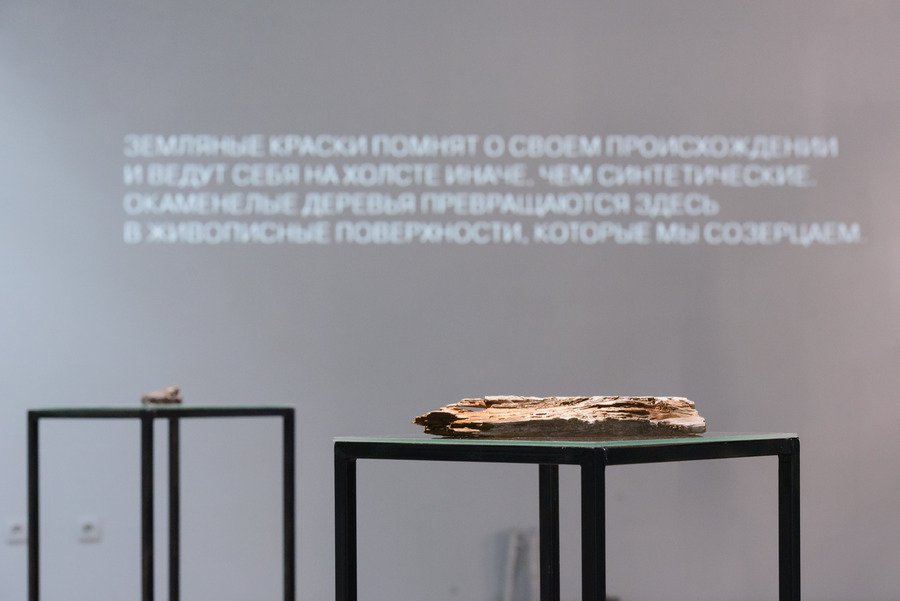 Из этих минералов изготовляют пигменты для «земляных» красок. После добавления связующих веществ получаются зеленые и коричневые краски, которые и обусловили палитру выставки.