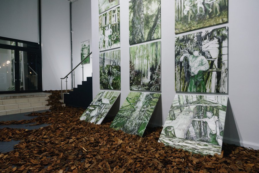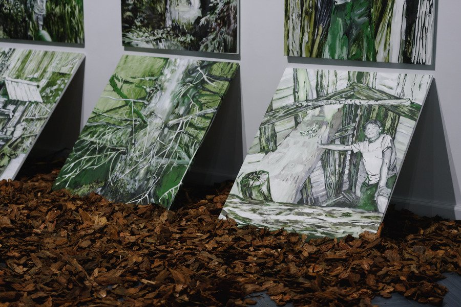 В исследование также вошли полевые экспедиции в деревню Куклы Брянской области, где жили предки. Здесь я на протяжении двух сезонов наблюдала за этапами возвращения деревьев и остатков избы в землю и фотографически документировала их. Подобно тому, как художники изучают анатомию человека, я изучала анатомию и динамику этого процесса. Как живописцу это помогло мне понять многие визуальные нюансы а главное, эмоциональный строй будущих картин и то, как возвращение дерева в землю связано с моими предками.