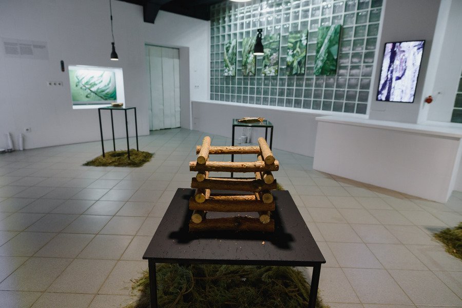 В своих работах и исследовании художница прослеживает путь древесной материальности сквозь миллионы лет: от органической жизни через геологические слои и производственные цепочки к художественной жизни. От времен, когда еще не было человека, до образов его среды и жизни. В проекте художницы древесное предстает посредником искусства и семейной истории, исконной материальностью нематериальных визуальных образов. Оно сопровождает и жизнь, и ее представление.
