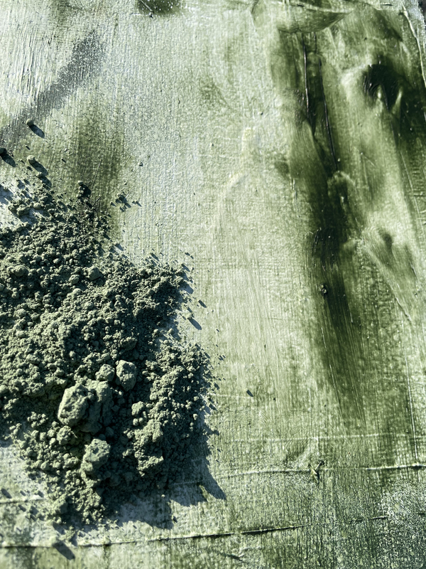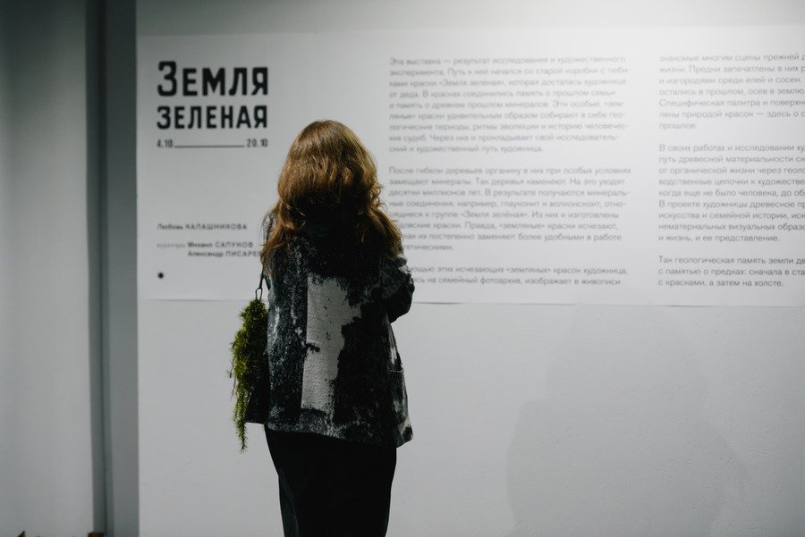 Выставка «Земля зелёная» — это художественное исследование на стыке минералогии, практической истории и deep media. В нем были задействованы архивы советской науки и промышленности, интервью с учеными и работниками сохранившегося производства «земляных» красок, а также личные фотоархивы.