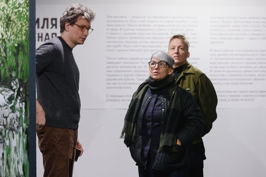 Эта выставка — результат исследования и художественного эксперимента. Путь к ней начался со старой коробки с тюбиками краски «Земля зелёная», которая досталась художнице от деда. В красках соединились память о прошлом семьи и память о древнем прошлом минералов. Эти особые, «земляные» краски удивительным образом собирают в себе геологические периоды, ритмы эволюции и историю человеческих судеб. Через них и прокладывает свой исследовательский и художественный путь художница.