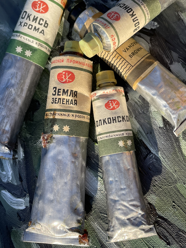 Разбирая старые семейные архивы, я наткнулась на набор масляной краски моего деда. На коробке была надпись «Земля зеленая». Сразу пришли воспоминания о том как в детстве дед разрешил мне открыть деревянный ящик с маленькими разноцветными и странно пахнущими металлическими тюбиками. Дело было в старом дачном доме, на большой веранде, сплошь состоящей из маленьких стеклышек в деревянной оправе. Тогда я смогла нарисовать что-то зеленое, отдаленно напоминающее куст… картинка не сохранилась, но запах этой краски навсегда со мной.