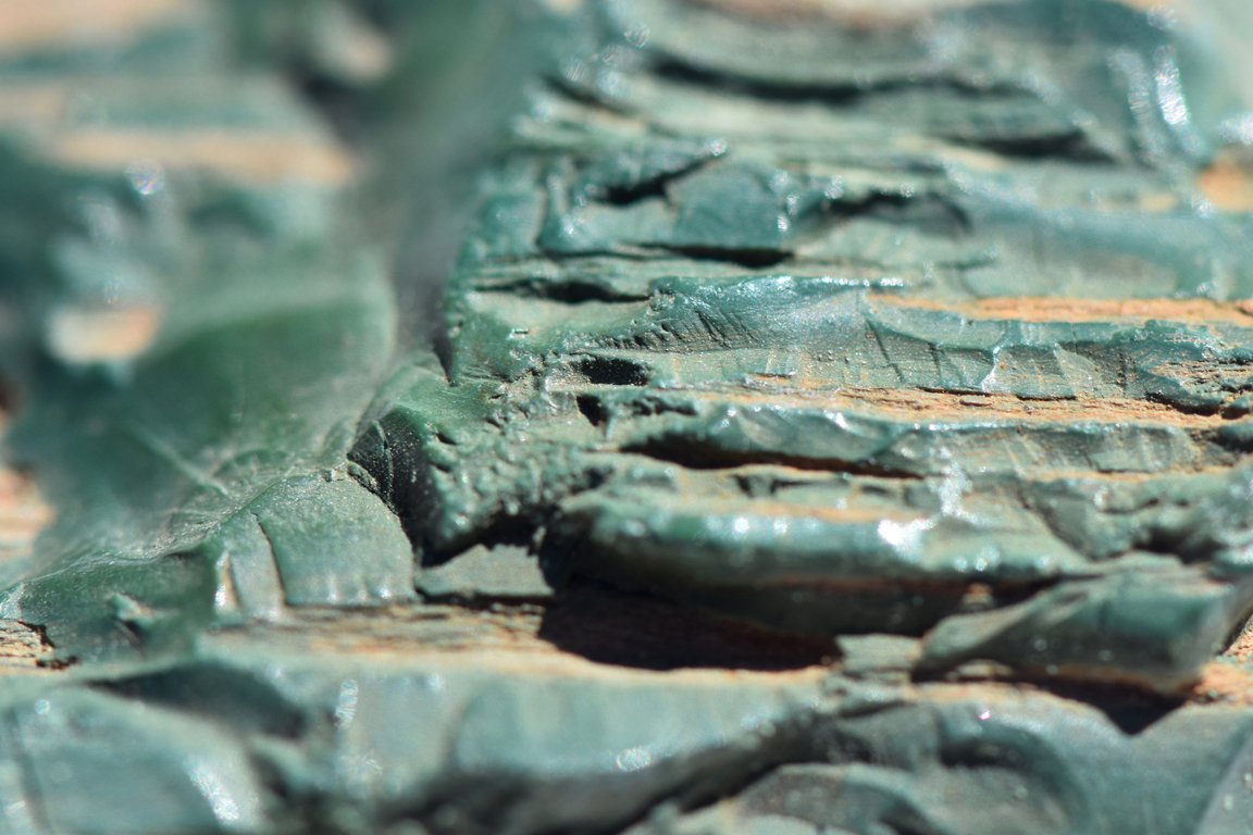 После гибели деревьев органику в них при особых условиях замещают минералы. Так деревья каменеют. На это уходят десятки миллионов лет. В результате получаются минеральные соединения, например, глауконит и волконскоит, относящиеся к группе «Земля зелёная». Из них и изготовлены дедовские краски. Правда, «земляные» краски исчезают, так как их постепенно заменяют более удобными в работе синтетическими.