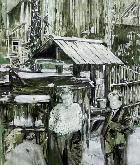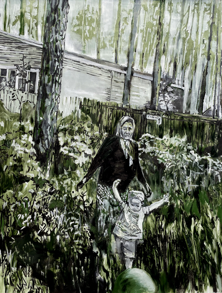 С помощью этих исчезающих «земляных» красок художница, опираясь на семейный фотоархив, изображает в живописи знакомые многим сцены прежней деревенской или дачной жизни. Предки запечатлены в них рядом со своими избами и изгородями среди елей и сосен. Избами, которые ныне остались в прошлом, осев в землю, и сохранились в образах. Специфическая палитра и поверхность этих картин обусловлены природой красок — здесь о себе заявляет древнее прошлое.