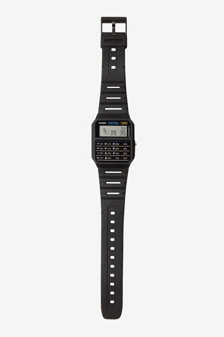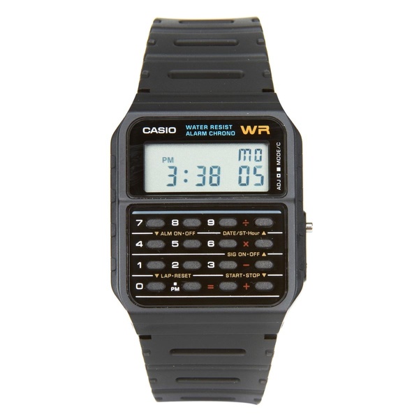 Casio Calculator Watch (1981–1984) — первые наручные часы с полноценным калькулятором. Удобные крупные кнопки и четкий дисплей сделали их технологичным и практичным гаджетом. Эти часы стали символом эпохи и любимы инженерами, программистами и студентами. Их дизайн с металлическим браслетом и множеством кнопок выражал любовь к технологиям. Сегодня Casio Calculator Watch — культовая ретро-модель, продолжающая пользоваться популярностью.