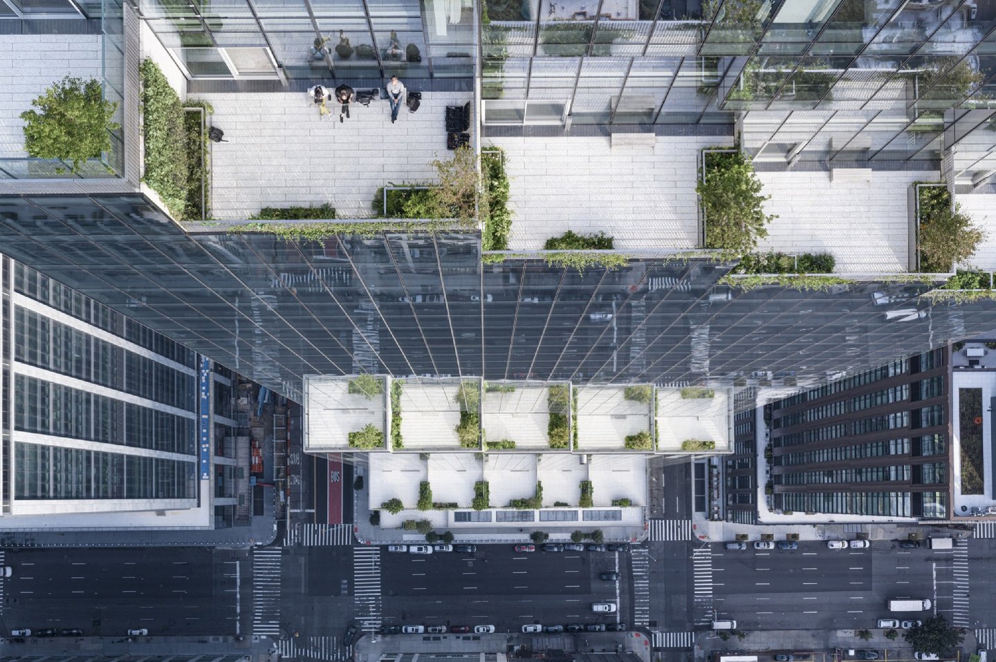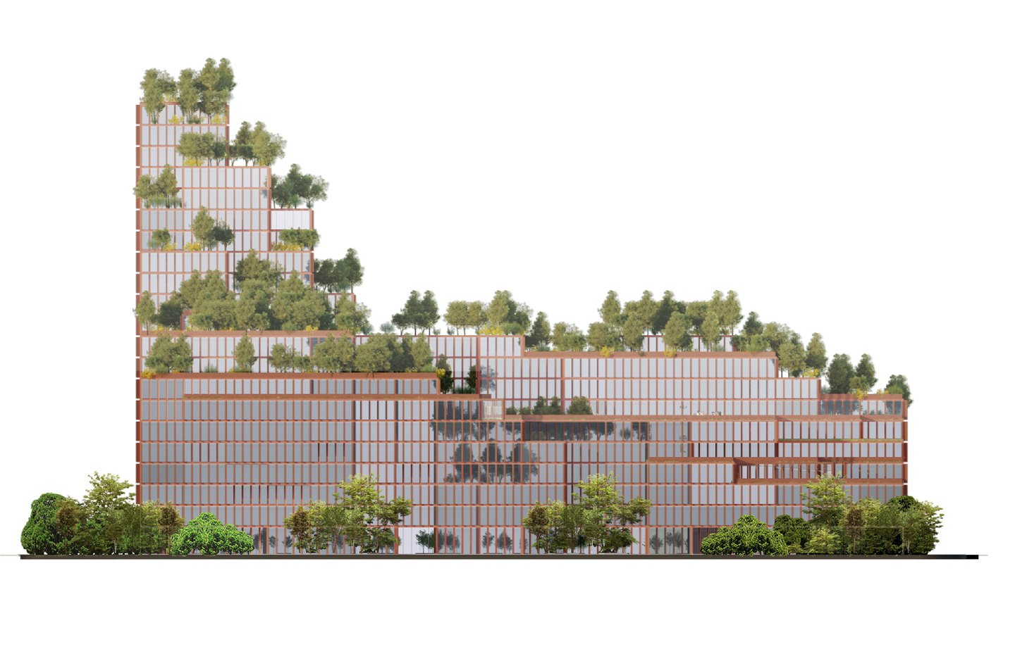 При этом в здании присутствует множество зеленых террас, интегрируя вертикальное озеленение прямо в здание.