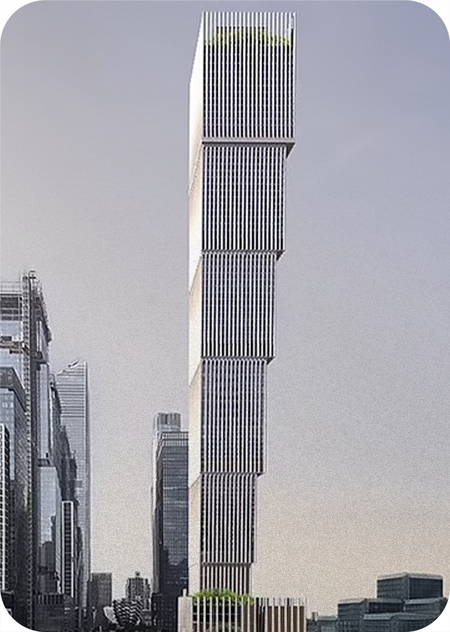 По форме его можно назвать перевернутым зиккуратом, доведенным до предела. Данное здание планируется одним из самых высоких в Нью-Йорке, прослеживая изначальную идею зиккуратов как о лестнице в небо.