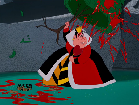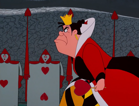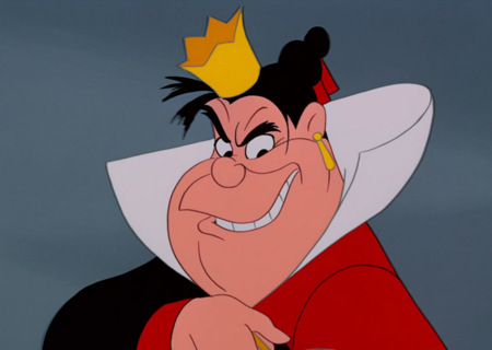 Далее образ глупой и некрасивой антагонистки развивается в «Алисе в стране чудес». Королева Червей деспотичная, резкая и явно умом не блещет. Она не высокая и статная злодейка, как это было в предыдущих мультфильмах, она карикатурно толстая и капризная женщина с поведением маленького ребенка.