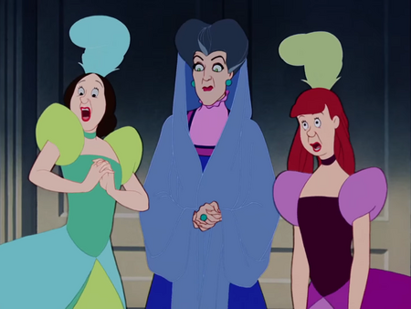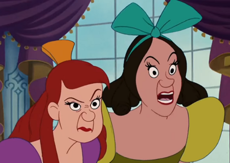 После «Белоснежки» студия представляет целых 3 отрицательных героинь в «Золушке» — Леди Тремейн, Дризеллу и Анастасию. И если у мачехи еще сохраняется образ статной женщины, то сестры уже отходят от этого в сторону более глупых героинь. Здесь и появляется первое деление на условно «красивых» и «не очень» антагонисток. Далее эта идея будет развиваться. В случае с «Золушкой», более холодная и строгая мачеха имеет острые черты лица и темную палитру в одежде. Легкомысленных сестер же отличают более круглые черты и яркие цвета.