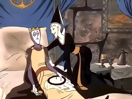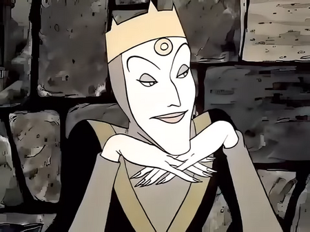 В то же время и у других студий выходят мультфильмы и мультсериалы, в которых можно встретить отрицательных персонажей женского пола. И если Дисней начал со Злой королевы, следует рассмотреть ее прообраз в «Черноснежке» — истории, где все происходит в альтернативной реальности классического сюжета. Королева умирает, на ее смену приходит фрейлина, которая и становится главной злодейкой. Забавно, что образ именно умершей королевы (а не главной антагонистки) больше смахивает на Злую королеву из «Белоснежки». Хотя у обеих есть что-то общее. Героиня, к слову, лысая и скрывает это под колпаком и короной.