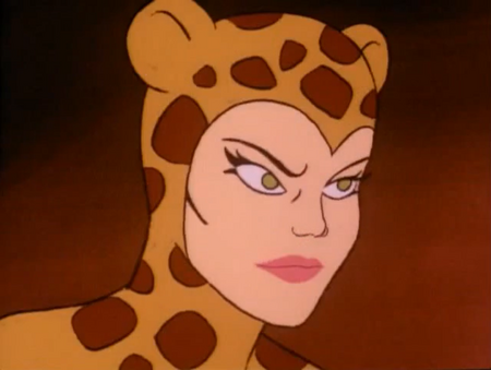 Гепардица появляется в мультсериале «Супер друзья». Как типичный комиксный антагонист, она сочетает в себе опасность и обаяние. Ее образ строится на кошачьей эстетике: грациозные движения, острые когти и соответствующая манера поведения. Характерной чертой персонажа стали кошачьи каламбуры, что добавляет ей харизмы. Ну и конечно, фирменный обтягивающий костюм в стиле классических суперзлодеек — неотъемлемая часть ее образа.