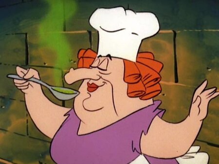 Хогата из «Смурфиков» появляется в нескольких эпизодах. Она носит парик, потому что у самой волос нет (как, кстати, у ранее упомянутой королевы из «Черноснежки»), носит фиолетовое платье и варит зелья. И все еще здесь характерный нос и бородавка на нем. Есть и ведьма не из студии Ханна Барбера. Это Хейзл, которая появляется в сериях со знаменитым кроликом — Багзом Банни. Тут образ ну очень клишированной ведьмы в треугольном платье.